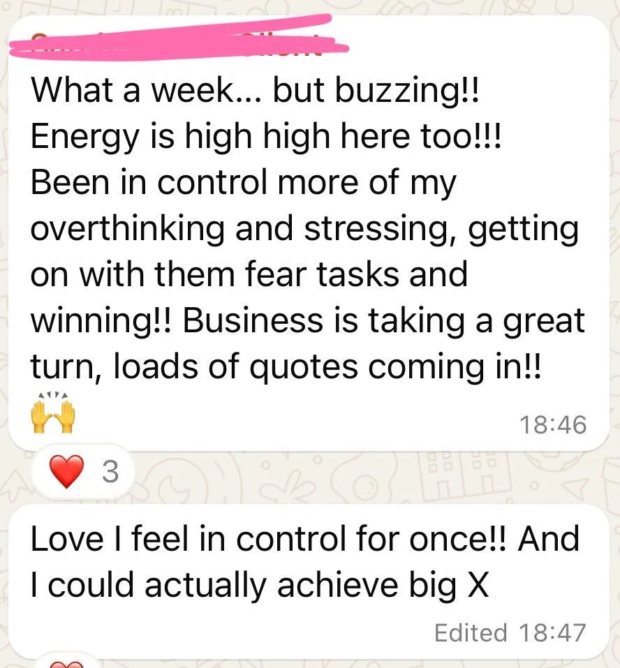 You’ll have undeniable confidence in yourself, knowing that you can handle and overcome any challenge or hurdle that comes your way, because if we’re being honest, there will always be challenges - every new level has a new devil - and how you navigate these challenges will dictate if you thrive or survive. This is about equipping you with emotional resilience, whilst building a calm nervous system as we overcome the mental blocks at each new level.
