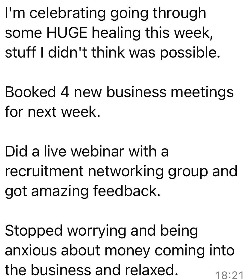 You’ll overcome all the mental barriers and subconscious blocks that are holding you back from scaling to £10k+ months. Receiving, holding and spending money will feel like a no-brainer.